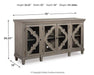 Wowing with exquisite quatrefoil framing, made all the more dramatic with the contrast of clear glass, this 4-door cabinet serves up an easy-elegant aesthetic sure to satisfy. The light and lovely finish brings a relaxed sensibility to the scene.