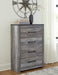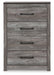 Alluring smoky gray hues create an ambiance that just feels right. This 4-drawer chest has a charming wood-like appeal enriched by a two-tone, textured look. Light neutral shades contrasted by a dark charcoal finish bring a refined yet relaxed feel to contemporary decor and a sense of serenity to your space.