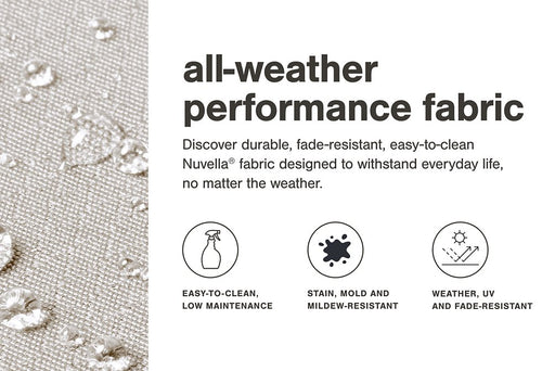 • Zippered cushions covered in high-performing Nuvella¬Æ fabric