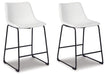 With its distinctive contoured bucket seat and tubular metal base, this upholstered bar stool serves up a fresh twist on mid-century inspired style. Practical faux leather has a charmingly vintage tone. What a timeless look for eat-in kitchens and casually cool dining rooms.