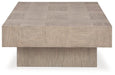 This striking coffee table looks equally at home in traditional or modern settings. A textural light gray finish offers a casual modern look, while the double plinth base exudes a classically contemporary sensibility. This timeless design adds a transitional touch that's sure to serve you well.