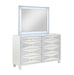 Introducing the luxurious Harlequin Bedroom Collection, the epitome of modern elegance and sophistication. Crafted from high-quality poplar solids and veneers, this collection is built to last, ensuring that your investment is a long-lasting one.The platinum finish of the Harlequin Bedroom Collection creates a shimmering and chic look, sure to impress anyone who enters your bedroom. The Full Ext Ball Bearing Glides provide smooth and easy opening and closing of drawers, while the English Dovetailed Drawers offer exceptional strength and stability.Each drawer in the Harlequin Bedroom Collection is lined with soft velvet, ensuring that your clothes and other items remain safe and protected. The Silver Lame with Mylar Cover throughout adds an extra layer of glamour to this already stunning collection.The Silver Drawer Pulls with crystal inlays add a touch of luxury, while the lighted, beveled dresser mirror with touch dimmer is both practical and beautiful. The Lighted Headboard with touch dimmer is the perfect finishing touch, ensuring that your bedroom is as inviting as it is beautiful.With the Harlequin Bedroom Collection, you''re not just investing in a beautiful bedroom set; you''re investing in a lifestyle upgrade. Treat yourself to the ultimate in modern luxury with this stunning collection.