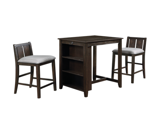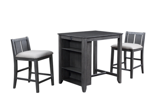 HESTON 36" STORAGE COUNTER TABLE SET W/2 CHAIRS-GRAY