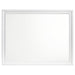 Exceptionally designed for transitional bedrooms, this five-piece bedroom set includes a panel bed frame, single two-drawer nightstand, five-drawer chest, and seven-drawer dresser with mirror, all in a crisp white finish with shiny metal hardware with faceted crystal accents. The paneled headboard and footboard offer channel tufted paneling wrapped in a metallic leatherette upholstery. Other extra touches include frame molding, turned feet, and felt lined top drawers. The nightstand offers a convenient power outlet for charging devices before bed. Place this bedroom set in a home to lend a more glamorous vibe.