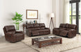 New Classic Furniture Taos Glider Console Loveseat with Power Footrest in Caramel